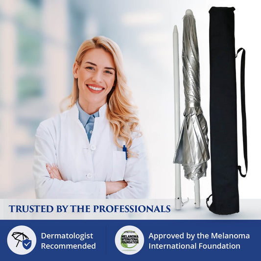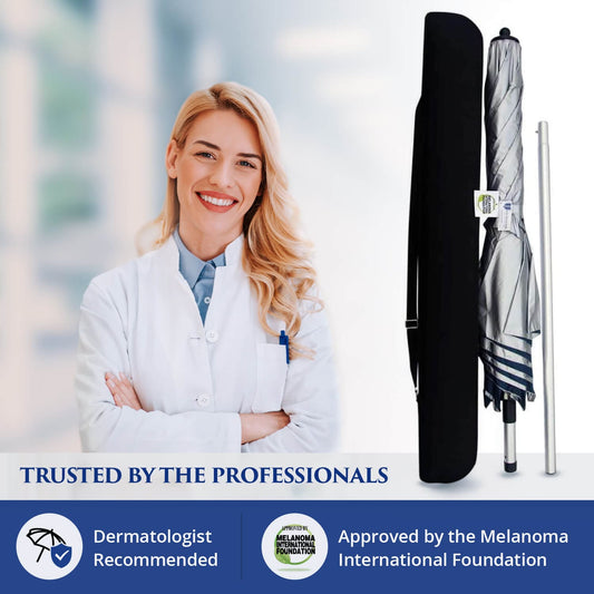UV-Blocker umbrellas are recommended by dermatologists and approved by the Melanoma International Foundation for effective sun protection. Also approved for use with your HSA/FSA card.